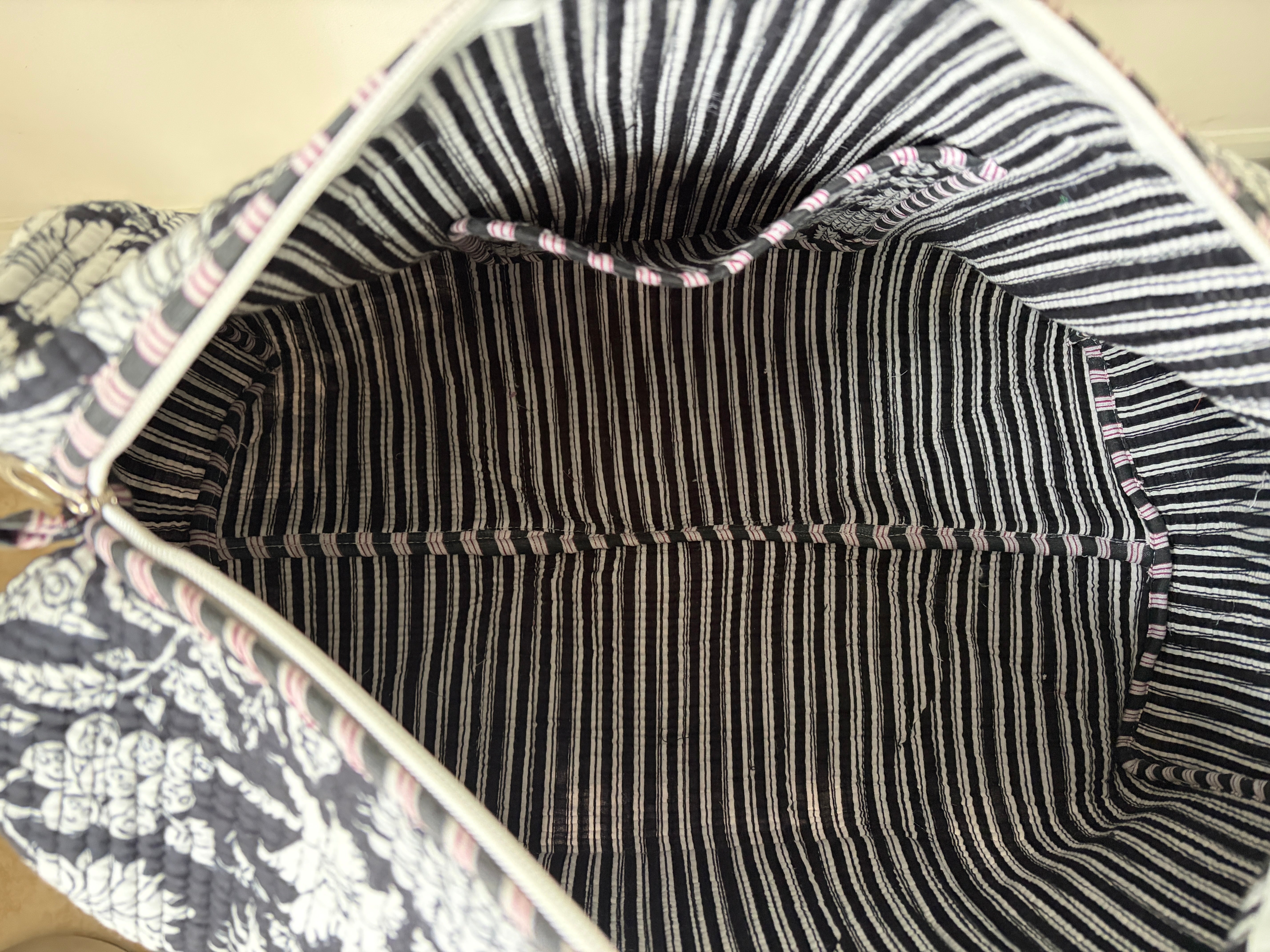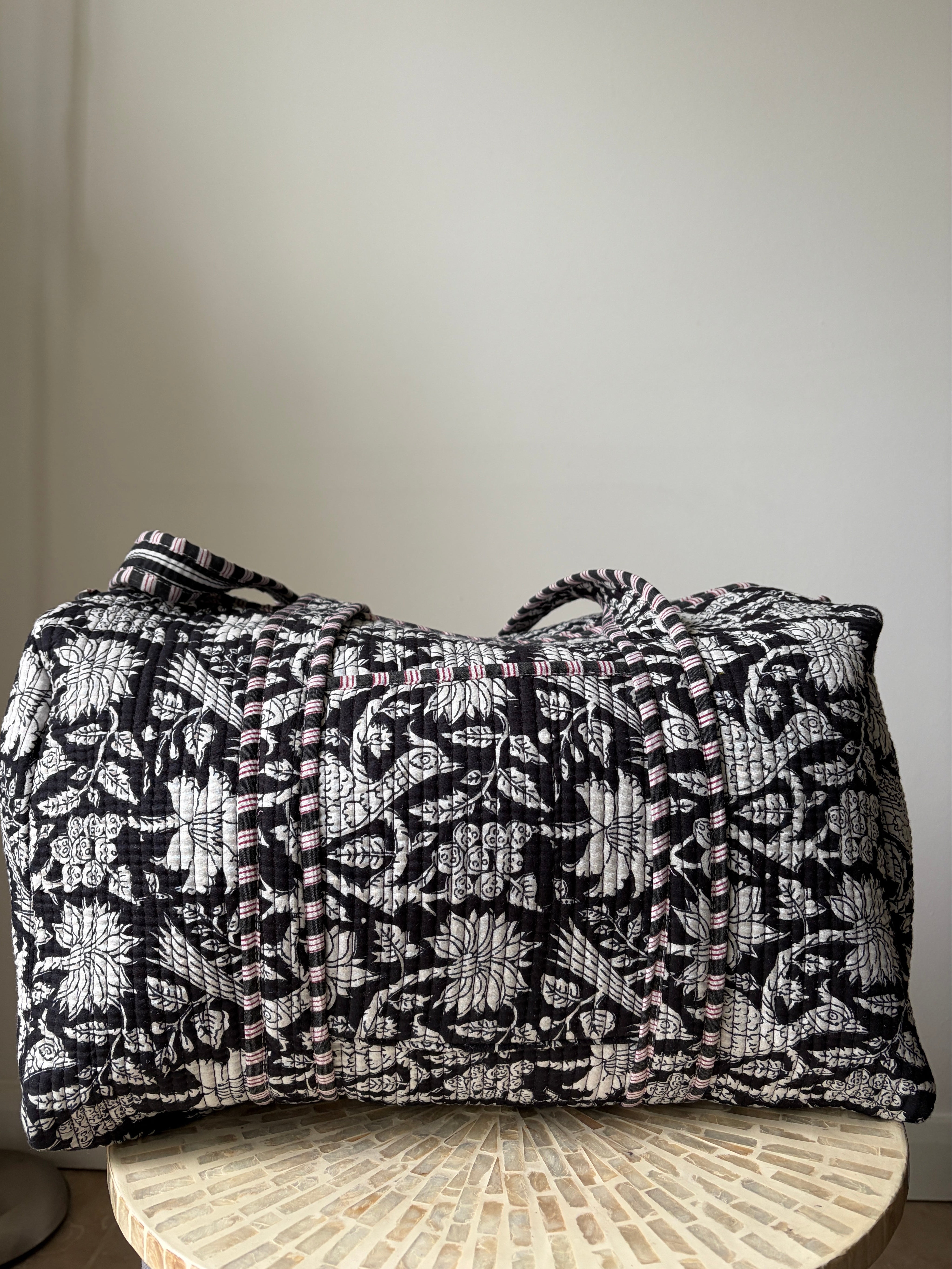 Travel in comfort and style with our handcrafted Cotton Quilted Duffle Bag. Made from soft, breathable cotton and beautifully quilted for durability, this bag offers both elegance and functionality. The spacious interior easily fits your daily essentials, weekend clothes, or gym gear, while the lightweight design makes it effortless to carry wherever you go.