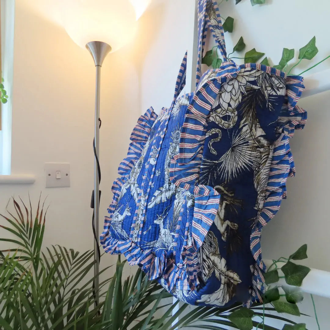 Perfect as a women’s quilted tote bag, frill tote handbag, or sustainable fashion accessory for everyday use.